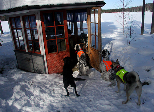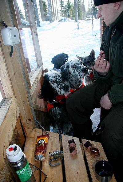 Mökkipihassa, setteri tarkkailee