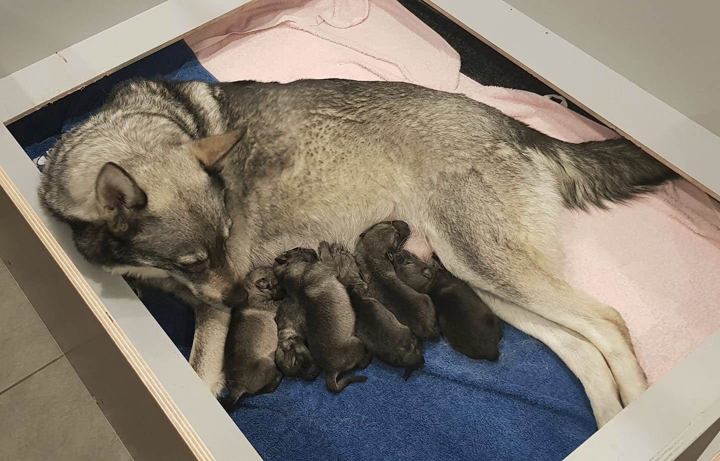 Emä ja pennut voivat hyvin! Kaikki pennut ovat